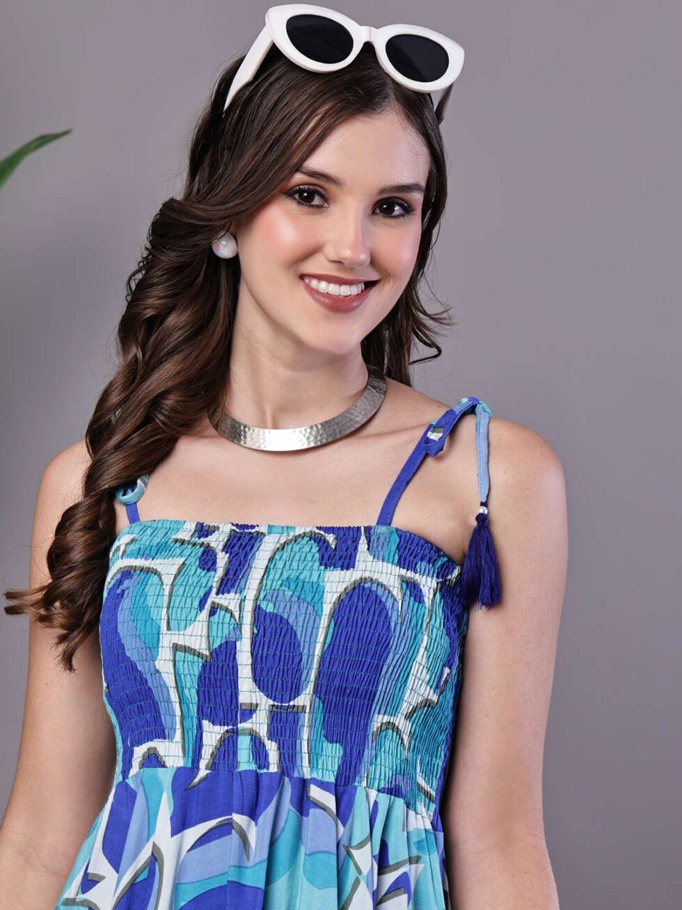 Be the first to review “Women’s Blue Printed Cotton Handkerchief Hem Dress Midi Dresses”